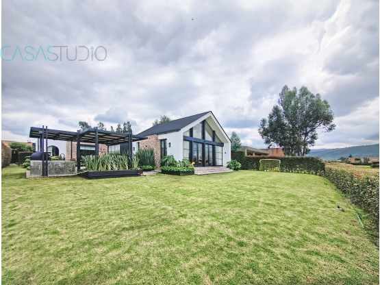 Casa de 1 solo piso, con grandes ventanales de piso a techo. Tiene 3 habitaciones con baño privado, amplio family room, estudio cerrado, cocina abierta, sala comedor con chimenea, cuarto y baño de servicio, zona de lavandería independiente, 3 parqueaderos techados, zona de bbq con pérgola y depósito. El club cuenta con sede social, salón de juegos, coworking, peluquería, gimnasio, restaurante-bar, piscina, salón social, spa, zonas húmedas con circuito hídrico, sauna, turco, canchas de tenis, pádel y campo de golf. La cuota mensual del club es de $1.500.000.